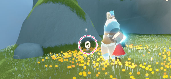 | ▲ アーチの下の4人の精霊の頭上に表示される「?」のアイコンを押すことでクエストを受注できます。また同様に、報酬キャンドルを受け取るときも、精霊の頭上のアイコンを押すことで受け取ることができます。またクエスト達成後、再びこのアイコンを押すことで報酬を受け取ることができます |