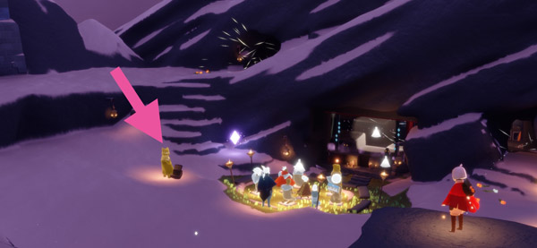 | ▲ アーチの下の4人の精霊の頭上に表示される「?」のアイコンを押すことでクエストを受注できます。また同様に、報酬キャンドルを受け取るときも、精霊の頭上のアイコンを押すことで受け取ることができます。またクエスト達成後、再びこのアイコンを押すことで報酬を受け取ることができます |