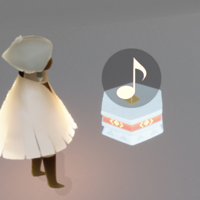 このアイテムにはオルゴール機能が付与されています。設置後のこのアイテムに近寄ると表示される音符のアイコンを押すと曲が流れ、×を押すと曲が止まります。