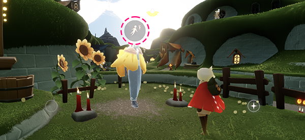 ▲ アーチの下の4人の精霊の頭上に表示される「?」のアイコンを押すことでクエストを受注できます。また同様に、報酬キャンドルを受け取るときも、精霊の頭上のアイコンを押すことで受け取ることができます。またクエスト達成後、再びこのアイコンを押すことで報酬を受け取ることができます